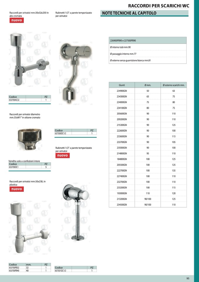 Raccordi per orinatoi diametro