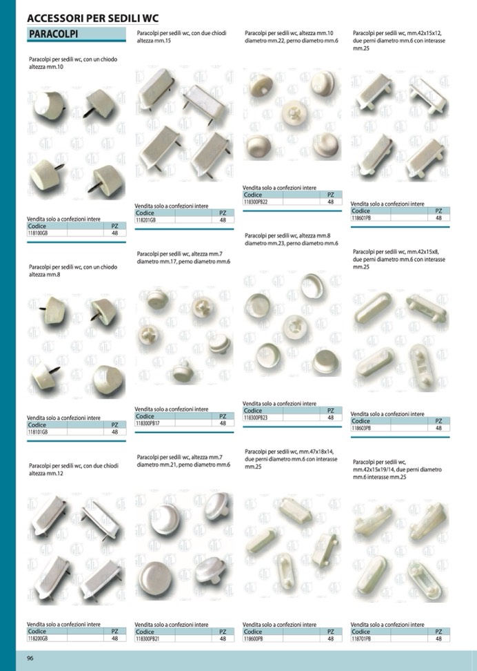 Paracolpi per sedili wc, mm.42x15x12,