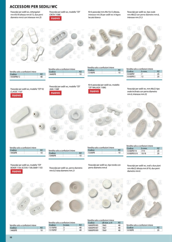 Paracolpi per sedili wc, tipo ovale