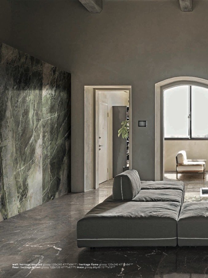 floor: heritage brown glossy 120x120 471/4”x471/4”/ maze glossy 39x49 151/3”x192/7”