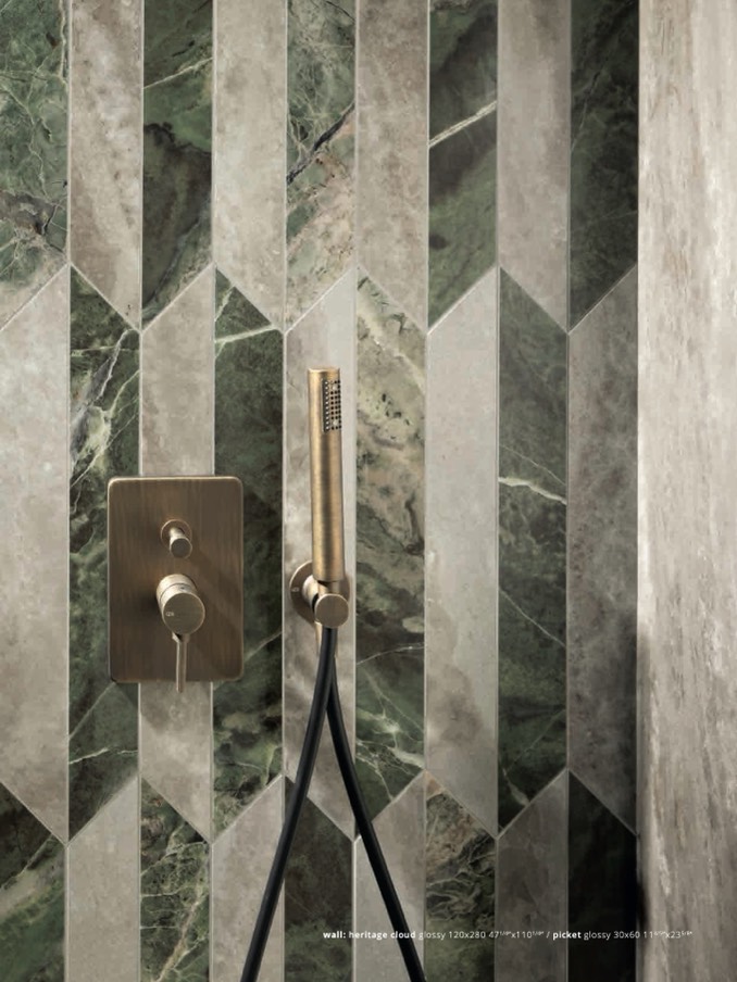 wall: heritage cloud glossy 120x280 471/4”x1101/4” / picket glossy 30x60 114/5”x235/8”