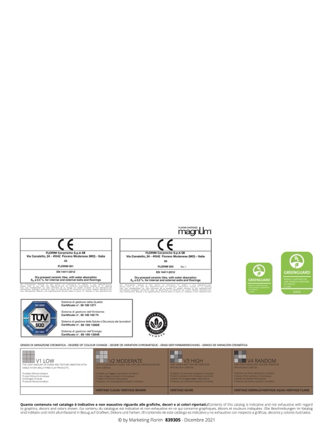 Per informazioni relative ai dati tecnici su marcatura CE vedere il sito www.florim.co