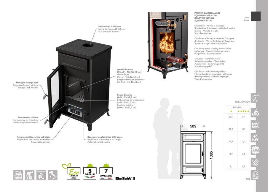 Ampio cassetto cenere estraibile