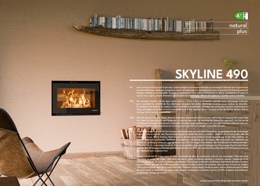 ENG New fire horizons for your home. Natural convection wood insert with Fullscreen technology to maximise the view of the