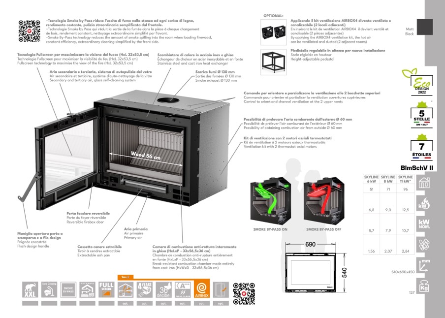 •Tecnologia Smoke by Pass riduce l’uscita di fumo nella stanza ad ogni carica di legna,