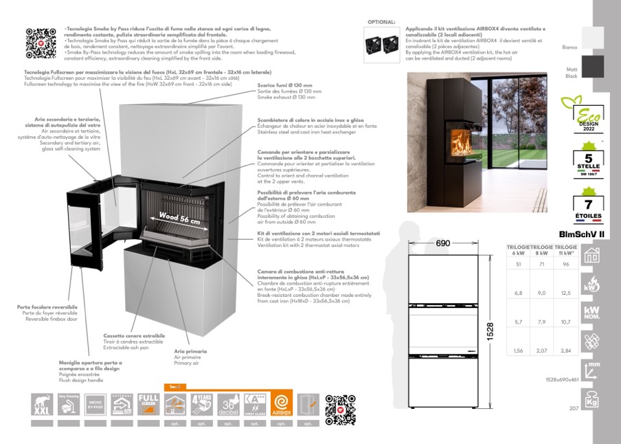 •Tecnologia Smoke by Pass riduce l’uscita di fumo nella stanza ad ogni carica di legna,