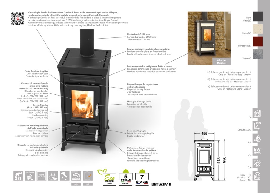•Tecnologia Smoke by Pass riduce l’uscita di fumo nella stanza ad ogni carica di legna,