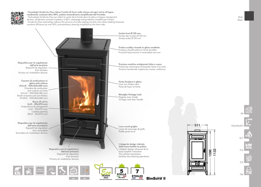 •Tecnologia Smoke by Pass riduce l’uscita di fumo nella stanza ad ogni carica di legna,