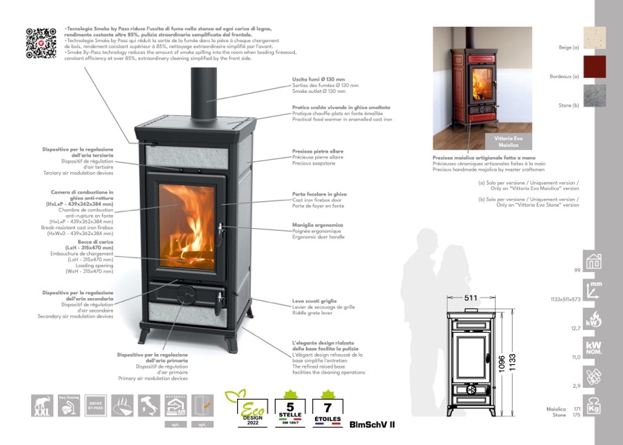 •Tecnologia Smoke by Pass riduce l’uscita di fumo nella stanza ad ogni carica di legna,
