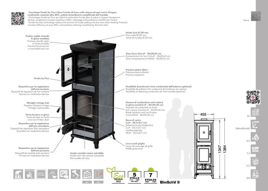 •Tecnologia Smoke by Pass riduce l’uscita di fumo nella stanza ad ogni carica di legna,