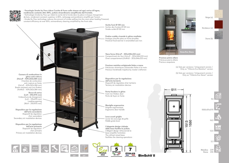 •Tecnologia Smoke by Pass riduce l’uscita di fumo nella stanza ad ogni carica di legna,