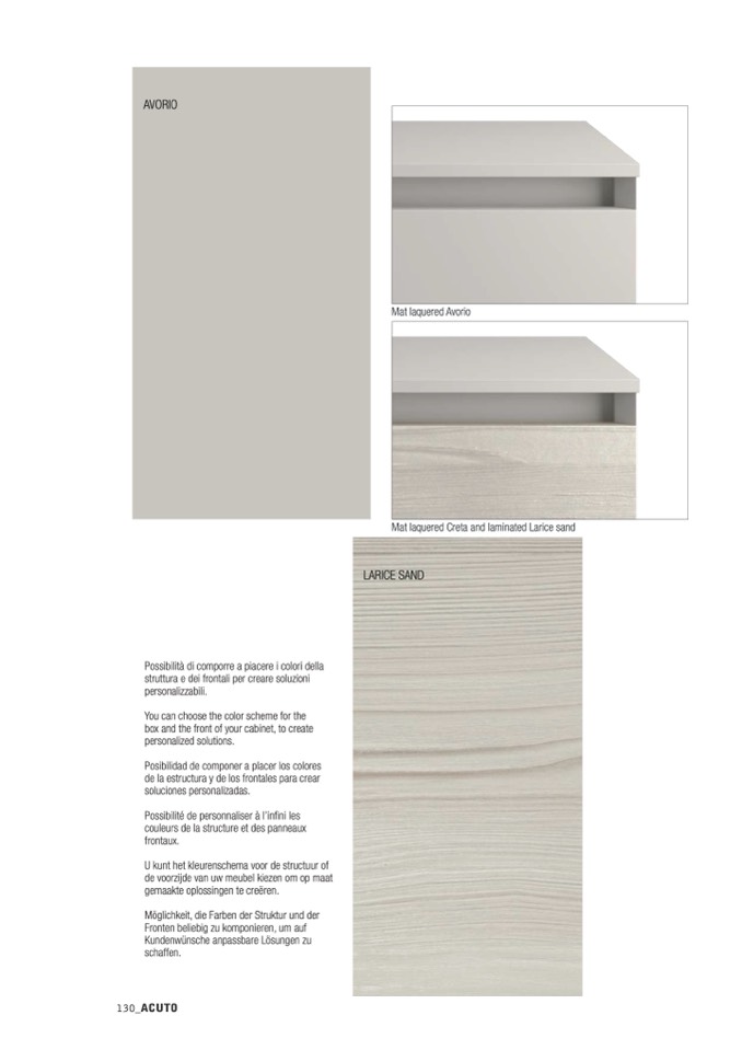 Mat laquered Creta and laminated Larice sand