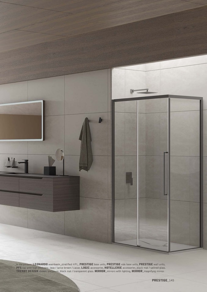 _in the picture: LEONARDO washbasin_stratified HPL. PRESTIGE base units, PRESTIGE side base units, PRESTIGE wall units,