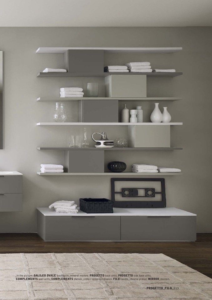 COMPLEMENTS wall units, COMPLEMENTS shelves_creta / cemento / bianco. FILO handle_chrome-plated. MIRROR_mirrors.