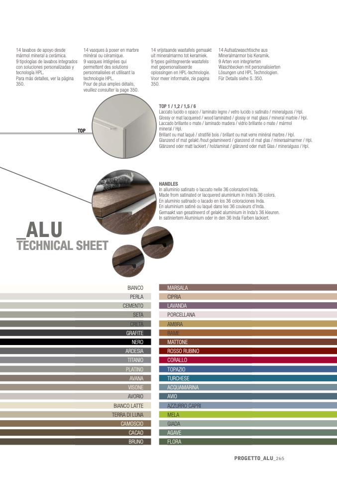 En aluminio satinado o lacado en los 36 coloraciones Inda.
