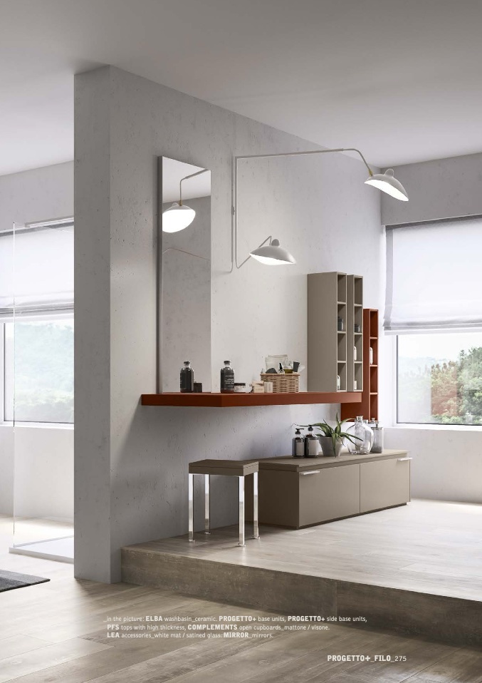 _in the picture: ELBA washbasin_ceramic. PROGETTO+ base units, PROGETTO+ side base units,