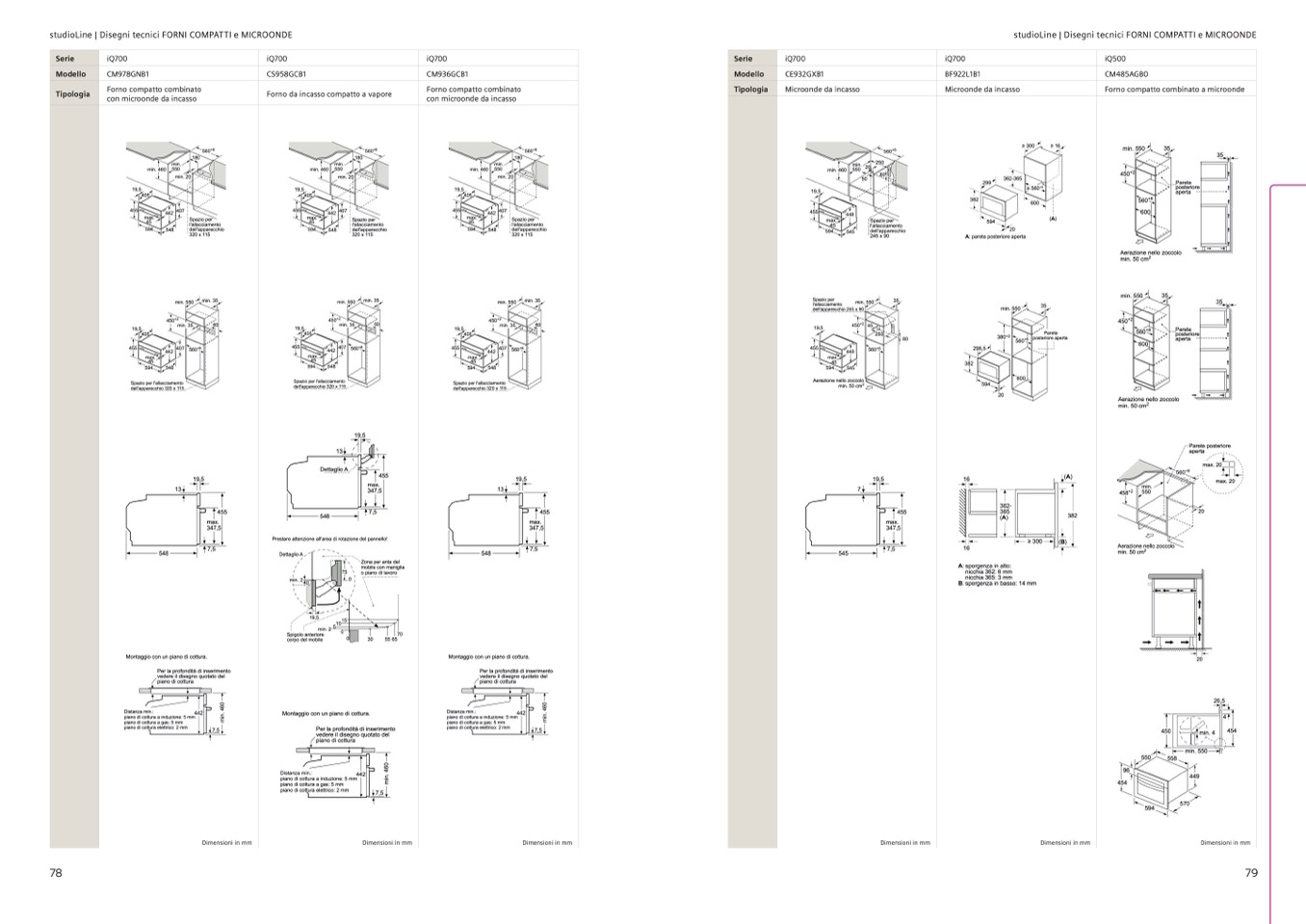 studioLine | Disegni tecnici FORNI COMPATTI e MICROONDE