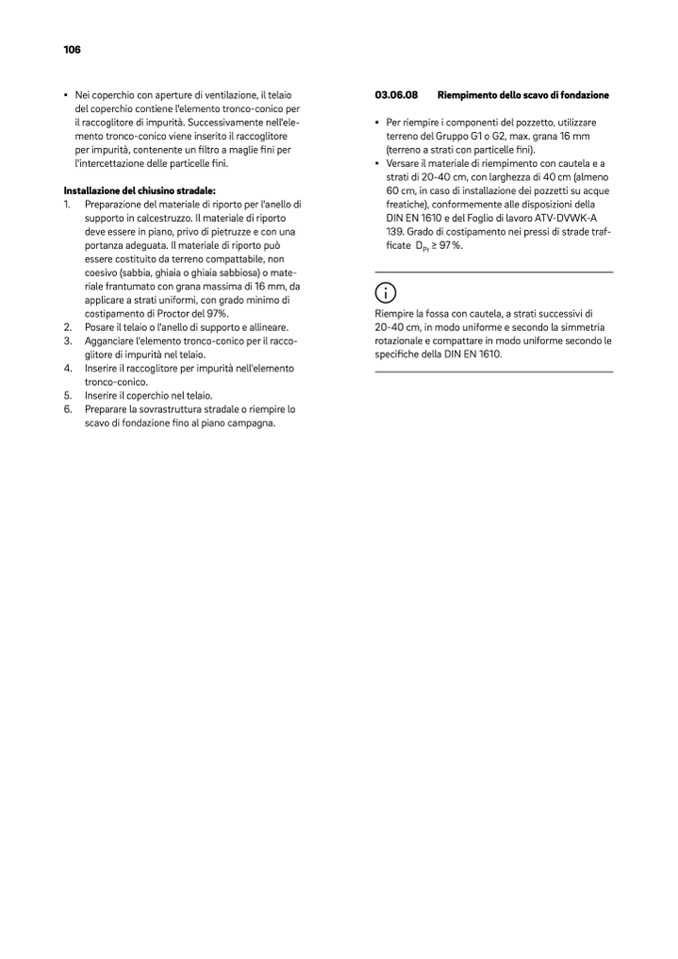 terreno del Gruppo G1 o G2, max. grana 16 mm