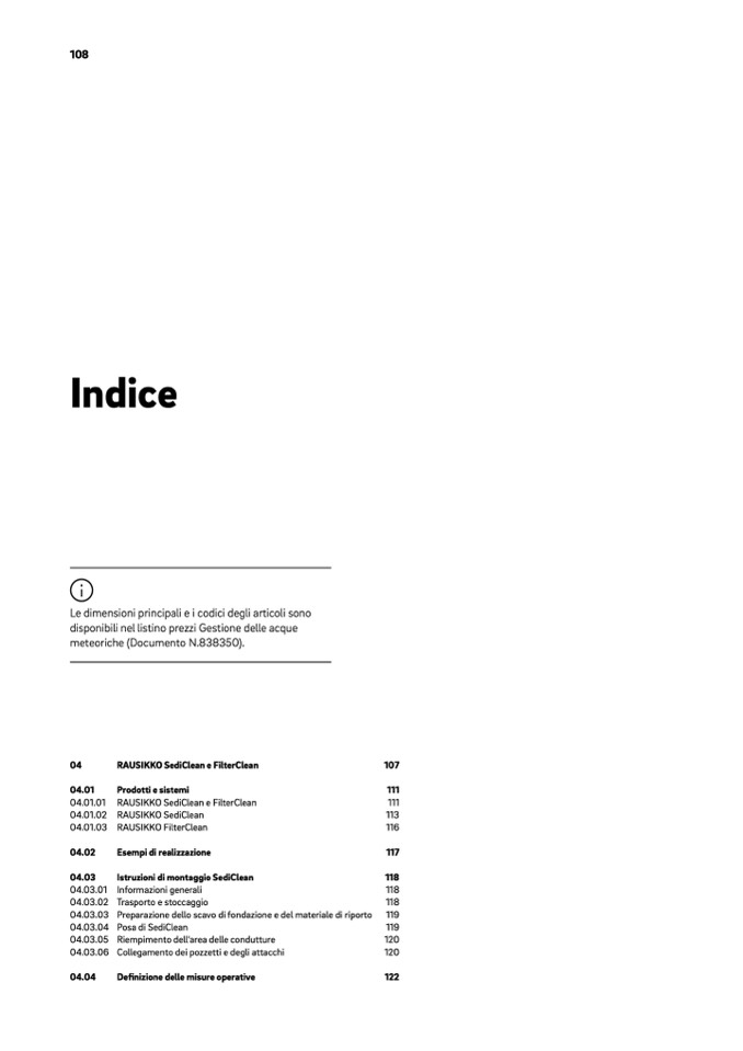 disponibili nel listino prezzi Gestione delle acque
