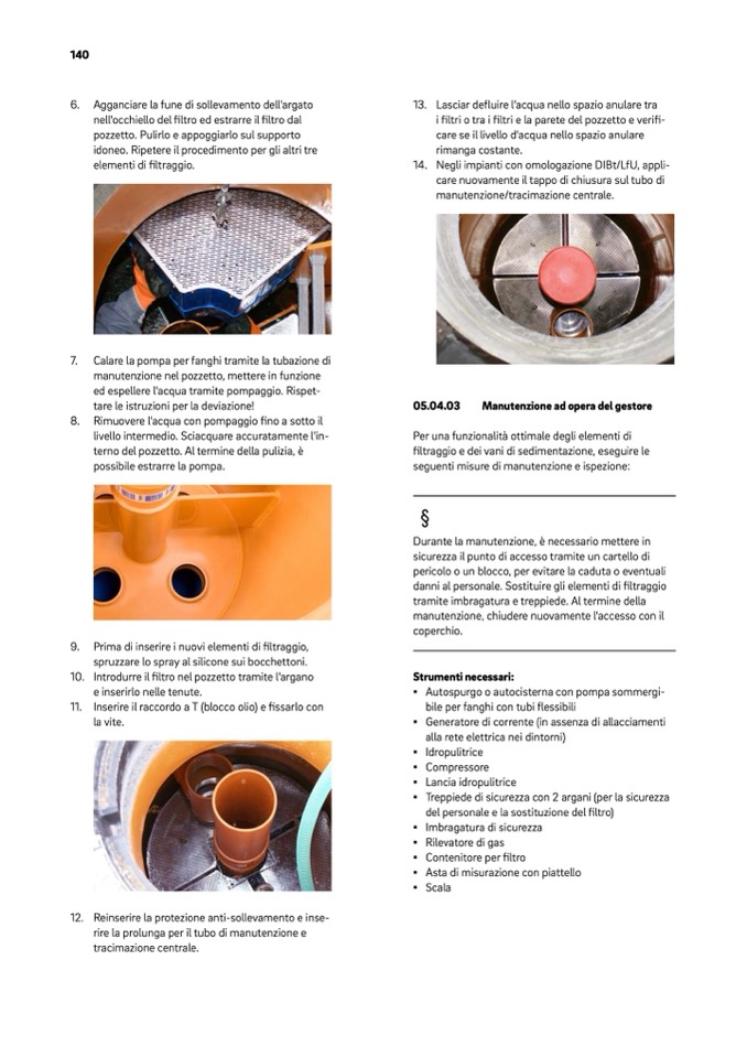i filtri o tra i filtri e la parete del pozzetto e verifi-