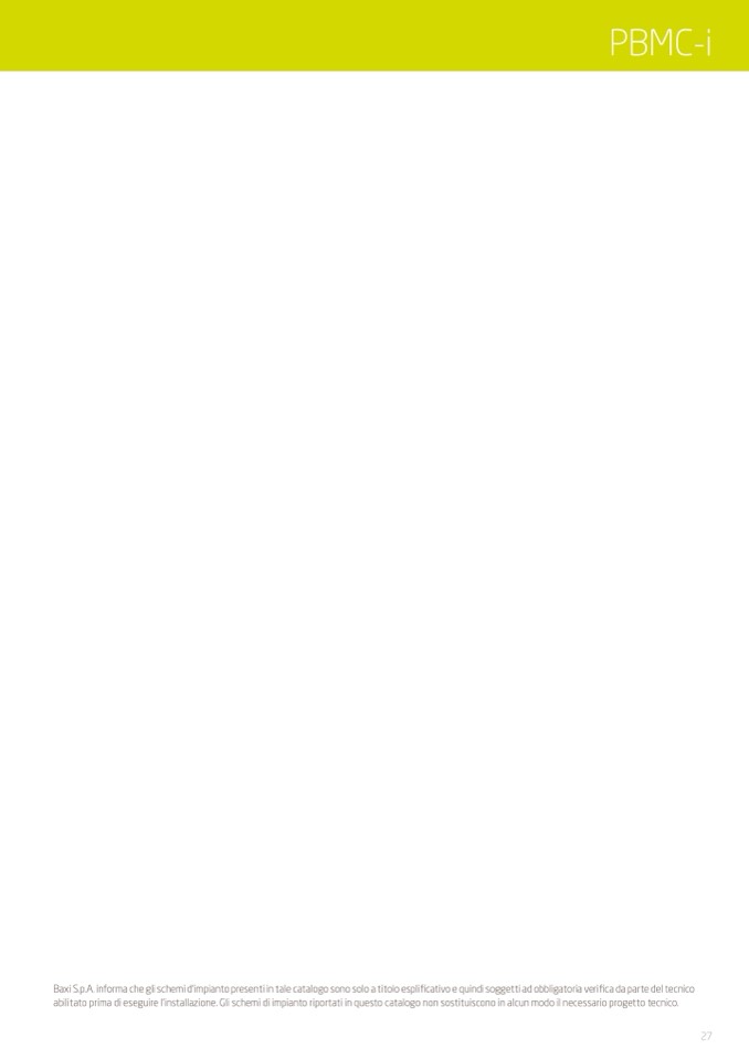 Baxi S.p.A. informa che gli schemi d’impianto presenti in tale catalogo sono solo a titolo esplificativo e quindi soggetti ad obbligatoria verifica da parte del tecnico