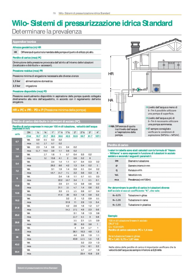 I valori in tabella sono stati calcolati con la formula di “Hazen