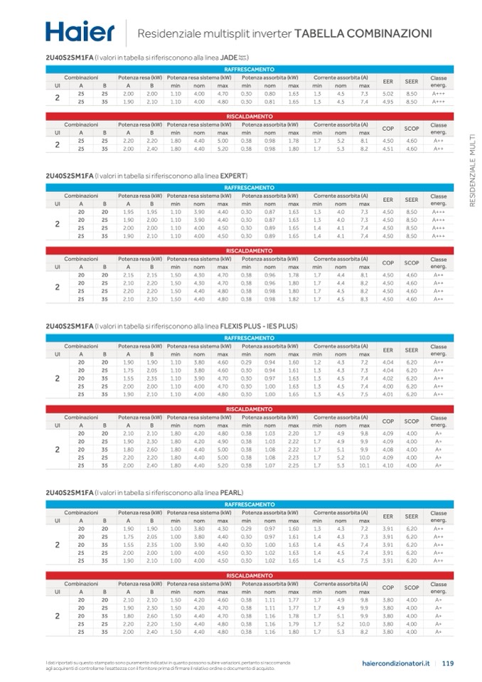 2U40S2SM1FA (I valori in tabella si riferisconono alla linea FLEXIS PLUS - IES PLUS)