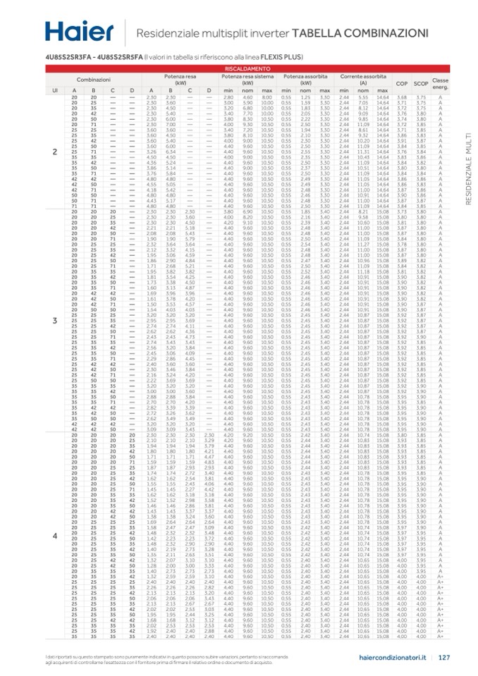 4U85S2SR3FA - 4U85S2SR5FA (I valori in tabella si riferiscono alla linea FLEXIS PLUS)