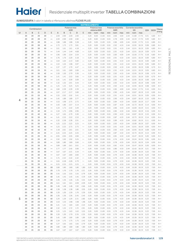 5U90S2SS5FA (I valori in tabella si riferiscono alla linea FLEXIS PLUS)