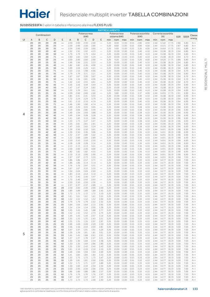 5U105S2SS5FA (I valori in tabella si riferiscono alla linea FLEXIS PLUS)