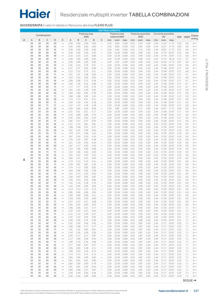 5U125S2SN1FA (I valori in tabella si riferiscono alla linea FLEXIS PLUS)