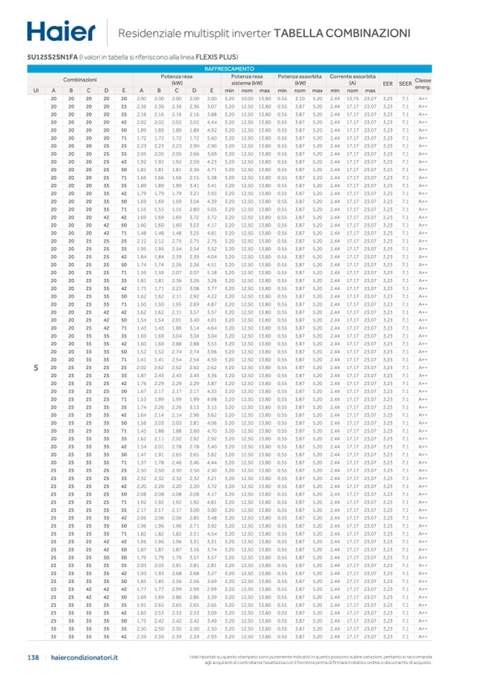 5U125S2SN1FA (I valori in tabella si riferiscono alla linea FLEXIS PLUS)