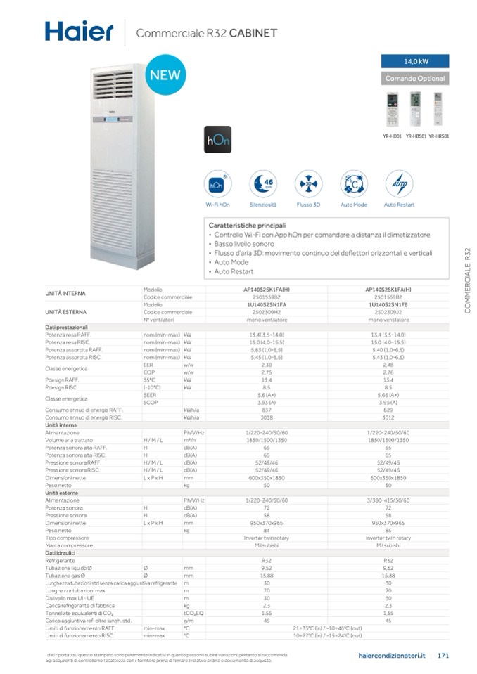 • Controllo Wi-Fi con App hOn per comandare a distanza il climatizzatore