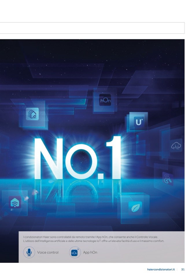 I condizionatori Haier sono controllabili da remoto tramite l'App hOn, che consente anche il Controllo Vocale.
