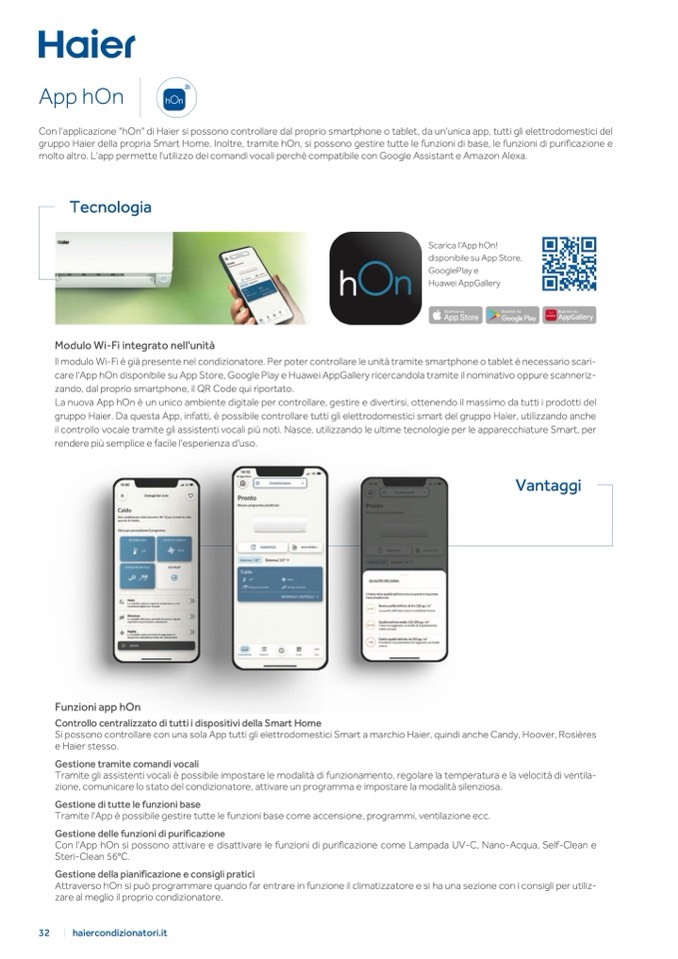 gruppo Haier della propria Smart Home. Inoltre, tramite hOn, si possono gestire tutte le funzioni di base, le funzioni di purificazione e