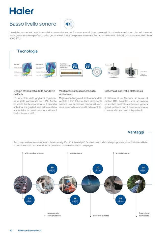 Per comprendere in maniera semplice cosa signifi chi 15db(A) si può far riferimento alla scala qui riportata, un'unità interna Haier