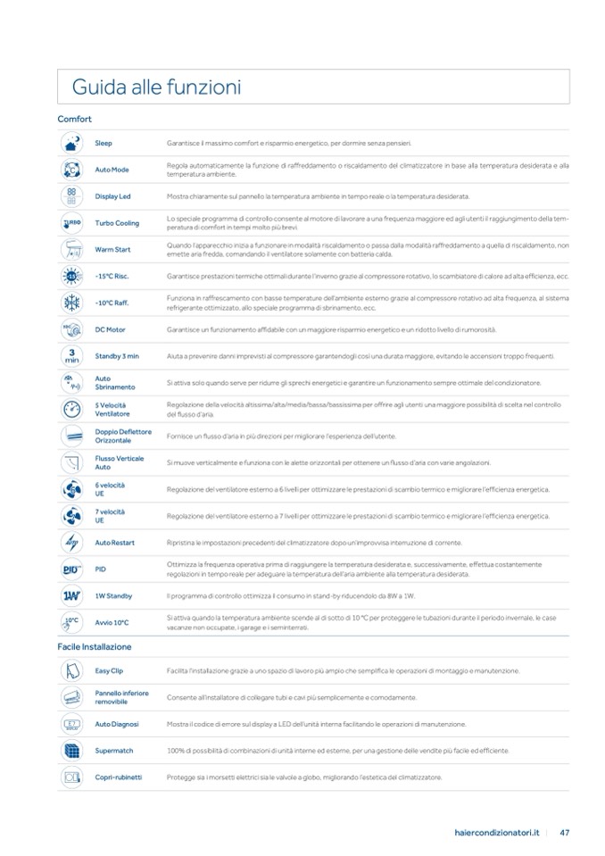 Garantisce prestazioni termiche ottimali durante l’inverno grazie al compressore rotativo, lo scambiatore di calore ad alta efficienza, ecc.