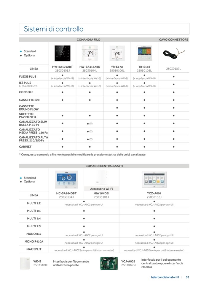 * Con questo comando a filo non è possibile modificare la pressione statica delle unità canalizzate