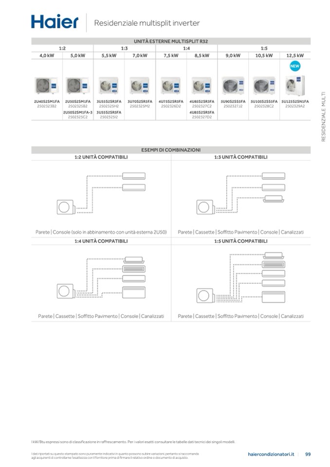 I kW/Btu espressi sono di classificazione in raffrescamento. Per i valori esatti consultare le tabelle dati tecnici dei singoli modelli.