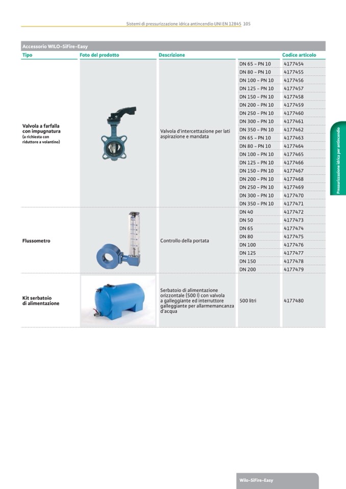Sistemi di pressurizzazione idrica antincendio UNI EN 12845 105