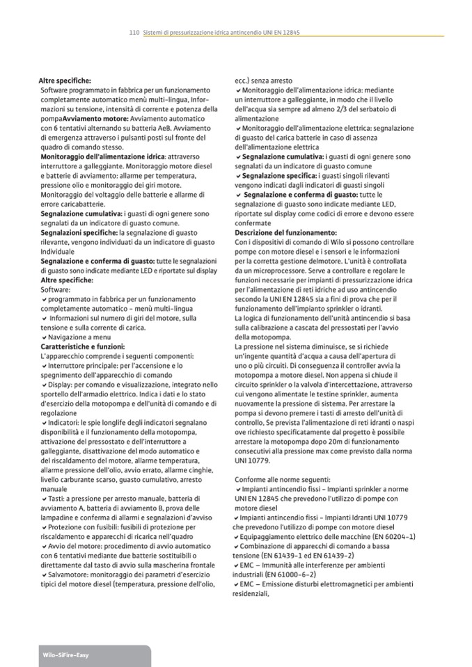 110 Sistemi di pressurizzazione idrica antincendio UNI EN 12845