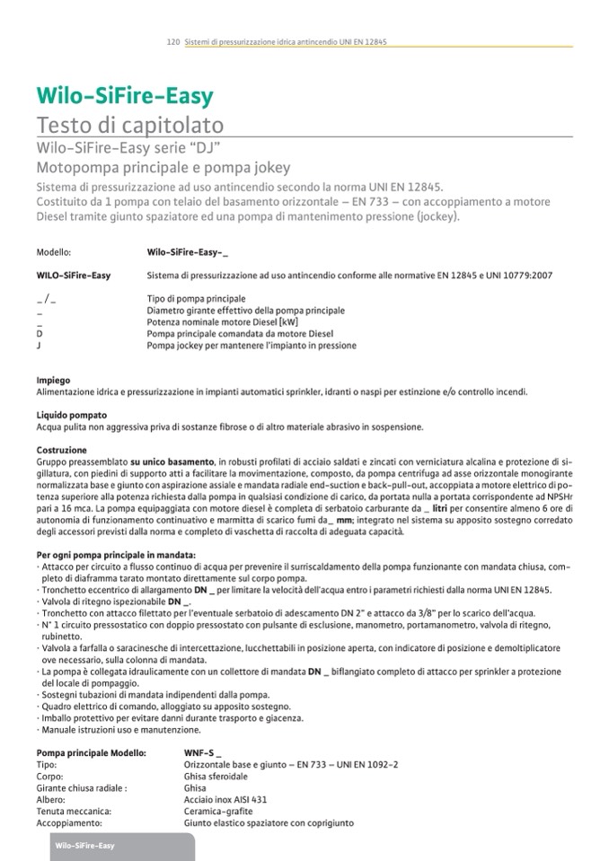 120 Sistemi di pressurizzazione idrica antincendio UNI EN 12845