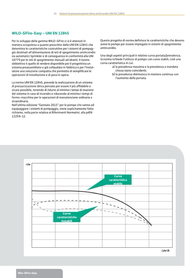la norma richiede l’utilizzo di pompe con curve stabili, cioè una