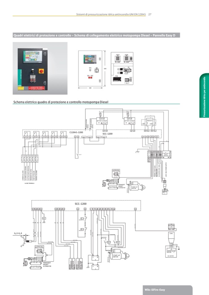 Quadri elettrici di protezione e controllo - Schema di collegamento elettrico motopompa Diesel - Pannello Easy D