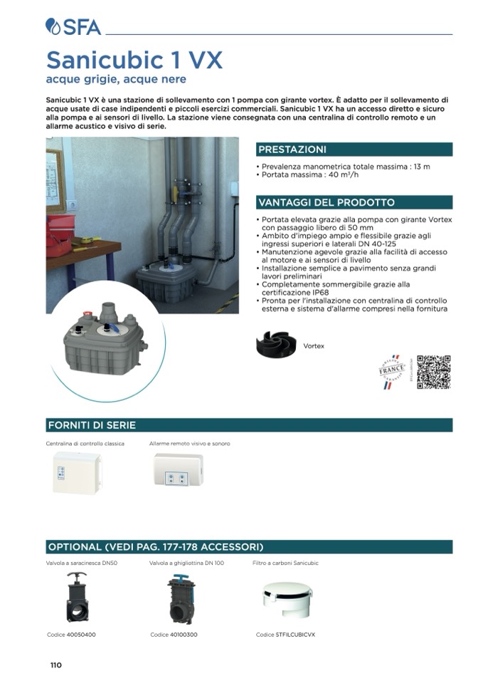 acque usate di case indipendenti e piccoli esercizi commerciali. Sanicubic 1 VX ha un accesso diretto e sicuro