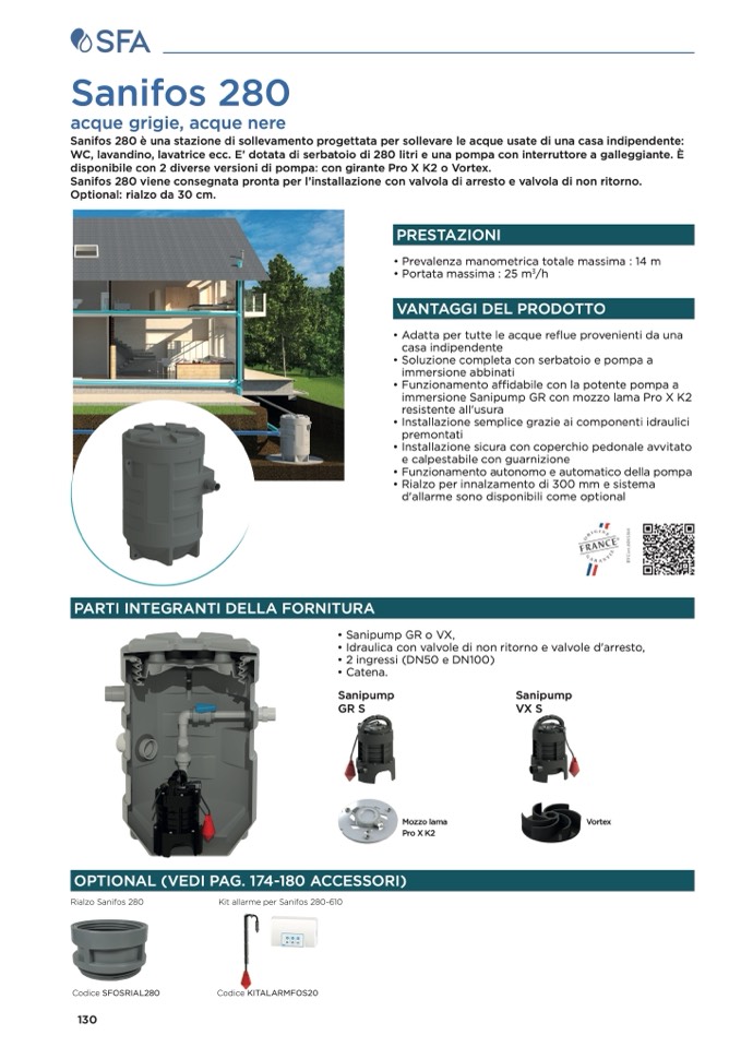 Sanifos 280 è una stazione di sollevamento progettata per sollevare le acque usate di una casa indipendente: