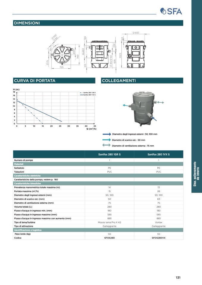 Caratteristiche della pompa, vedere p. 160