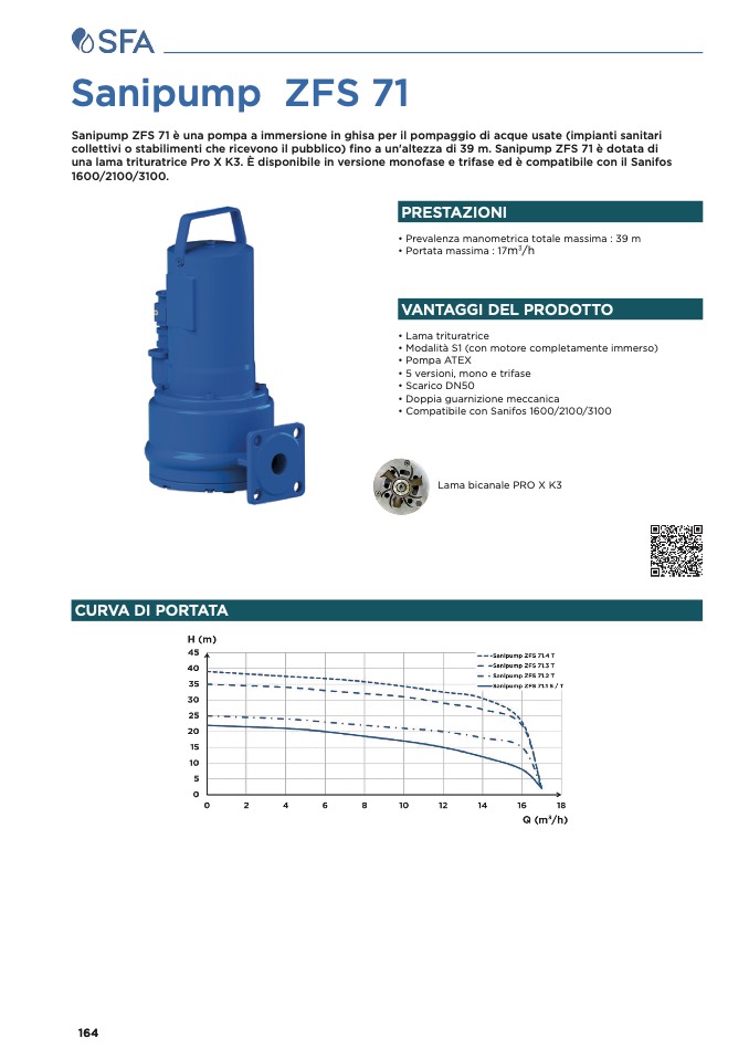collettivi o stabilimenti che ricevono il pubblico) fino a un'altezza di 39 m. Sanipump ZFS 71 è dotata di