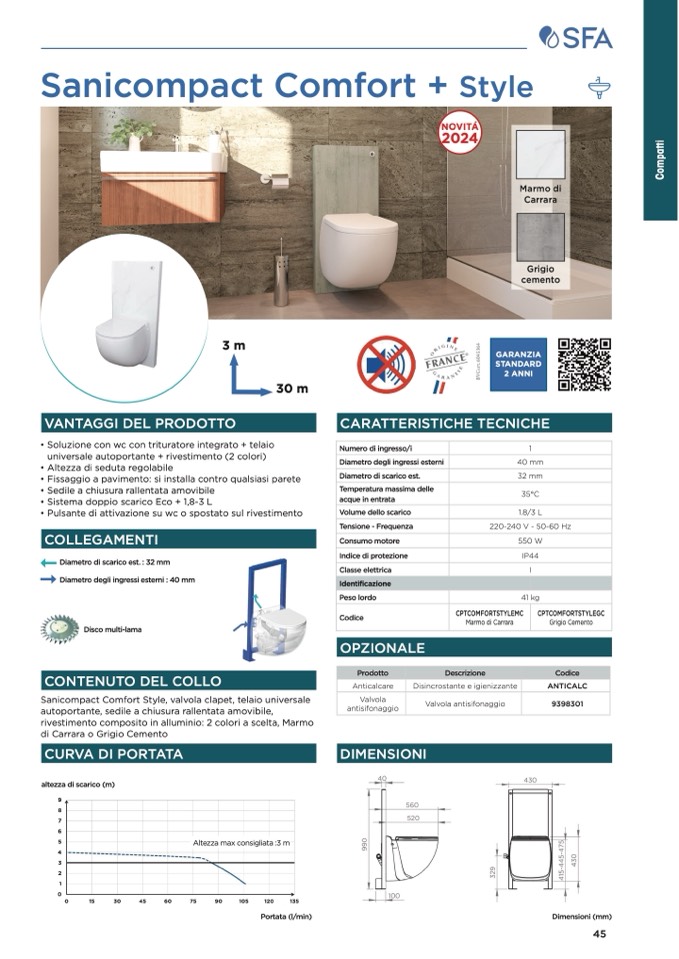 Sanicompact Comfort Style, valvola clapet, telaio universale