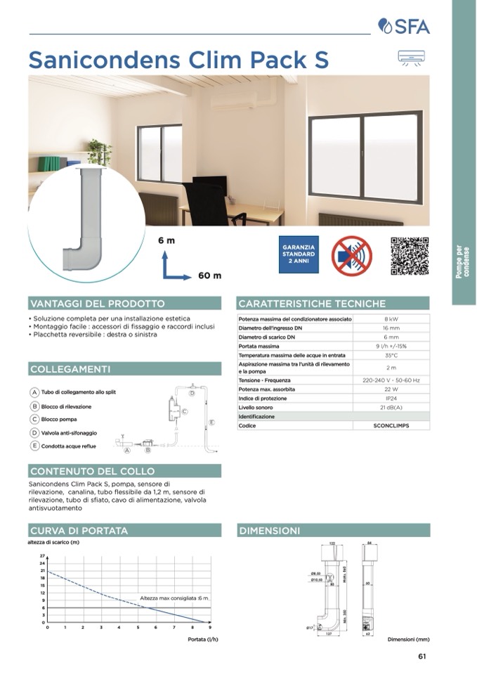 Sanicondens Clim Pack S, pompa, sensore di